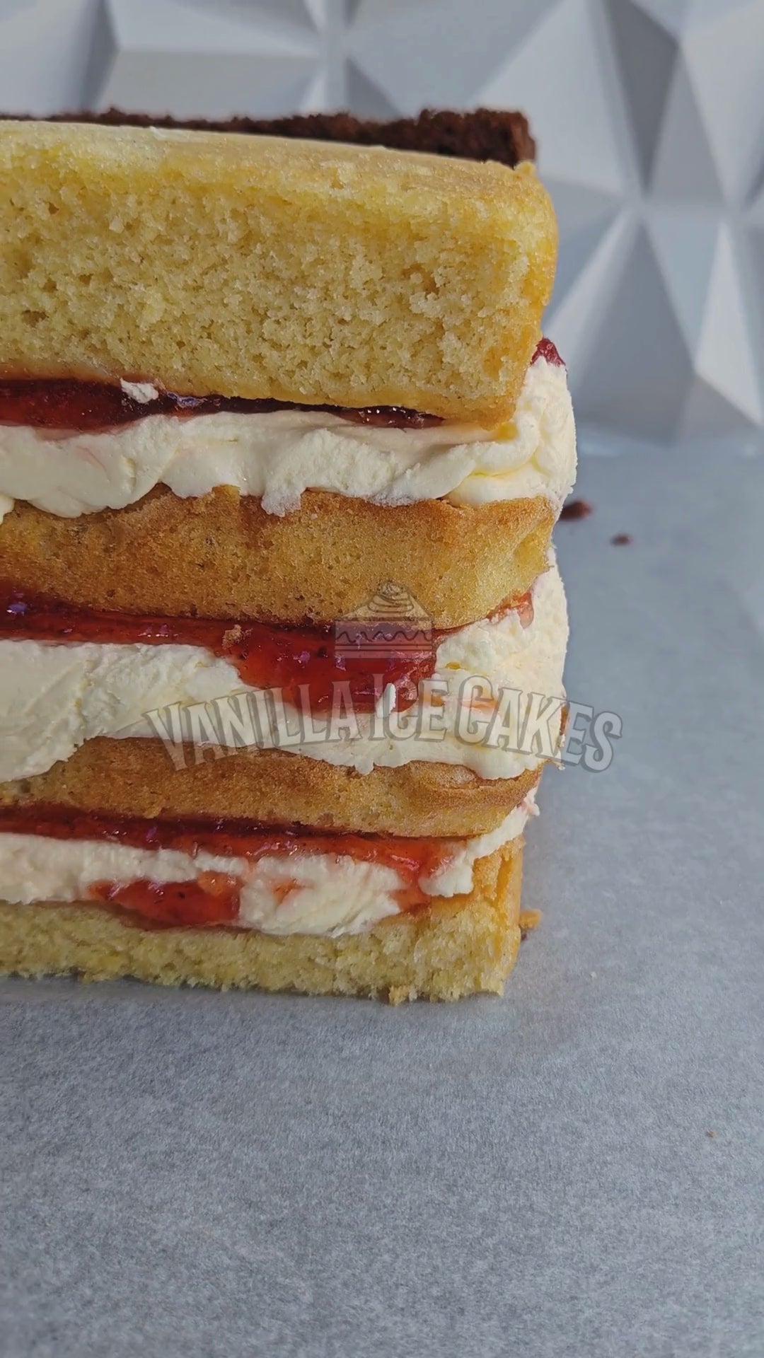 Indulge in the amazing flavours of our massive Vanilla Cake Slab! This epic 4-layer cake slab boasts our famous fluffy vanilla sponge, carefully stacked with creamy buttercream frosting and luscious jam.