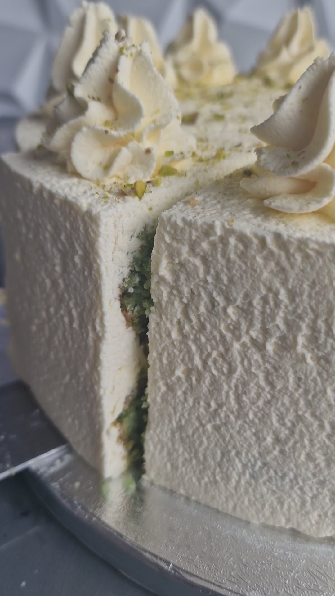 Fresh Cream Pistachio Cake Slice